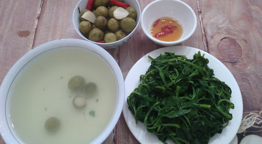 đĩa rau Muống, bát cà muối…; sau đó tráng miệng bằng húp nước luộc dầm sấu thì